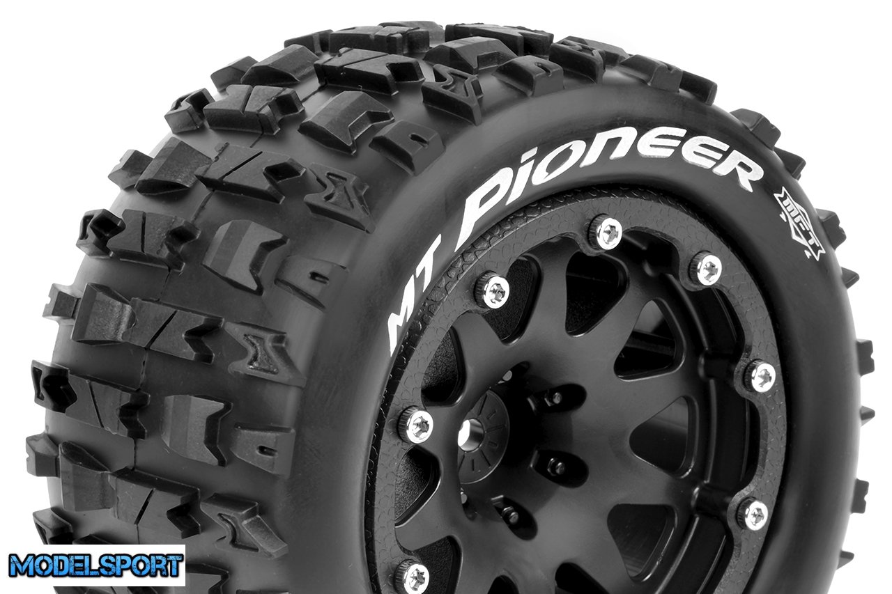 Louise RC - MFT - MT-PIONEER - 1-10 Monster Truck Tire Set - Mounted - Sport - Black 2.8 Bead-Lock Wheels - 1/2-Offset - Hex 12mm - L-T3308SBH
