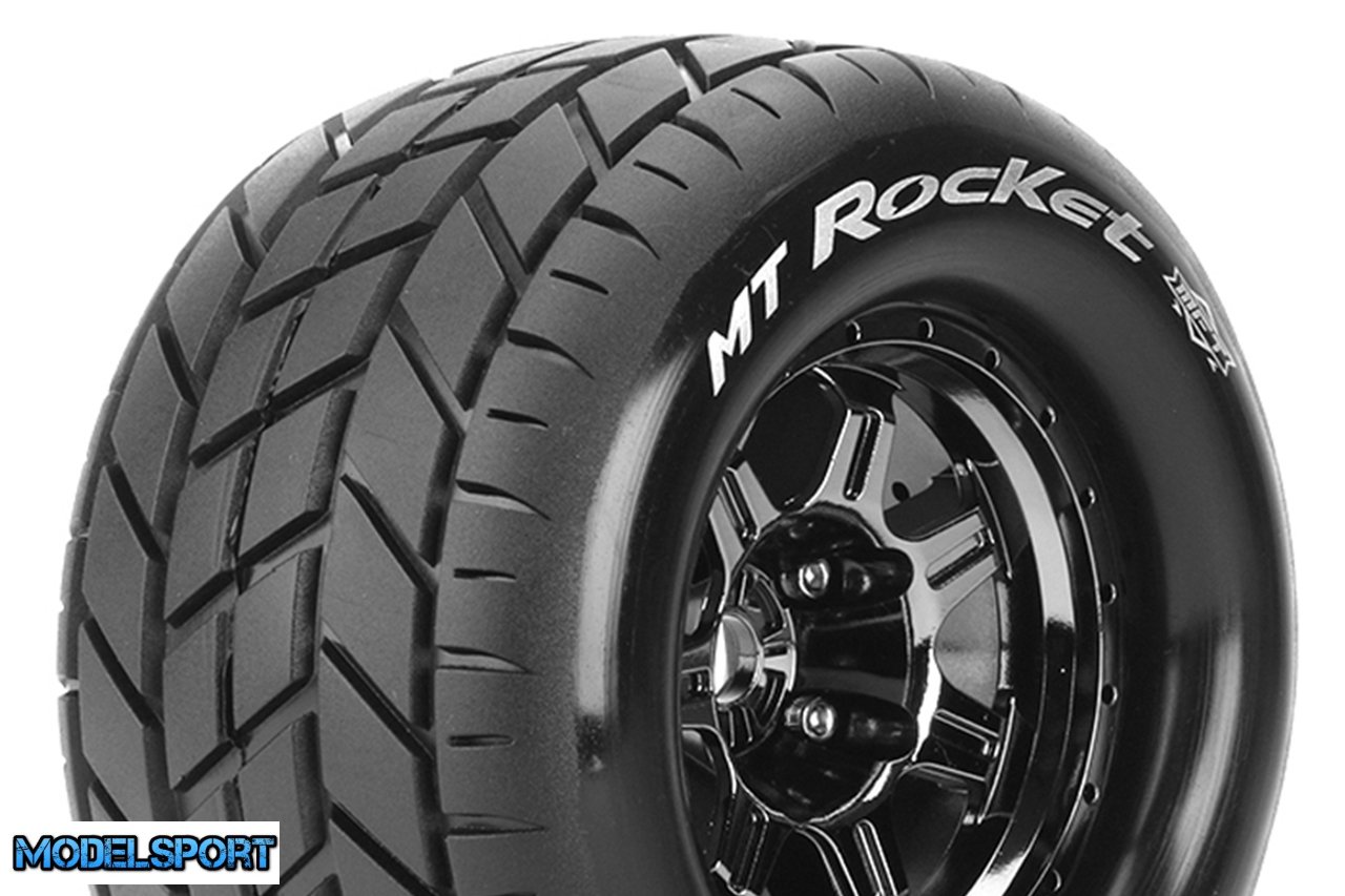 Louise RC - MFT - MT-ROCKET - 1-8 Monster Truck Tire Set - Mounted - Sport - Black Chrome 3.8 Bead Style Wheels - 1/2-Offset - Hex 17mm - L-T3320BCH