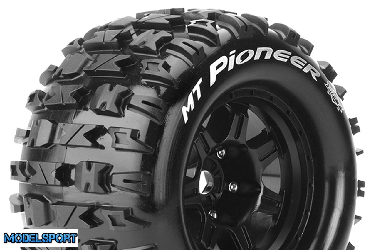 Louise RC - MFT - MT-PIONEER - 1-8 Monster Truck Tire Set - Mounted - Sport - Black 3.8 Bead Style Wheels - 0-Offset - Hex 17mm - L-T3321B