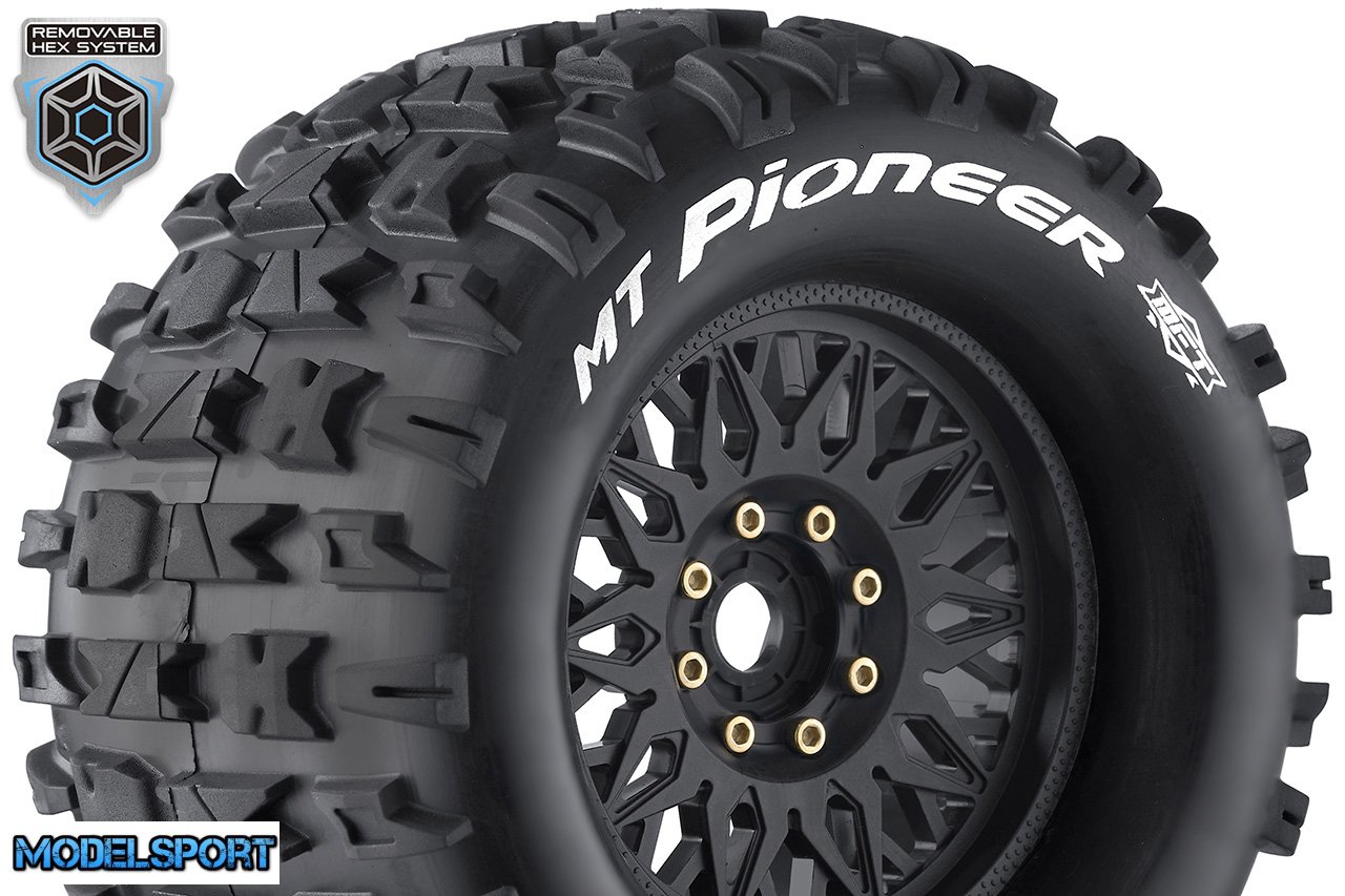 Louise RC - MFT - MT-PIONEER - 1-8 Monster Truck Tire Set - Mounted - Sport - Black Wheels - Removable 0" & 1/2" OFFSET HEX 17mm - L-T3321X