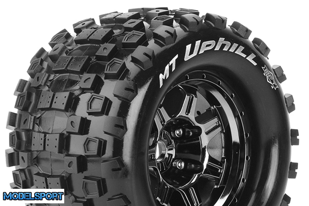 Louise RC - MFT - MT-UPHILL - 1-8 Monster Truck Tire Set - Mounted - Sport - Black Chrome 3.8 Bead Style Wheels - 0-Offset - Hex 17mm - L-T3322BC