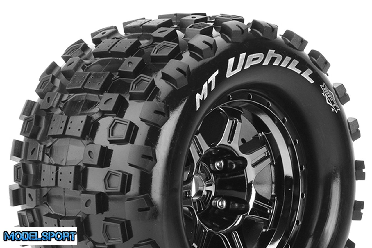 Louise RC - MFT - MT-UPHILL - 1-8 Monster Truck Tire Set - Mounted - Sport - Black Chrome 3.8 Bead Style Wheels - 1/2-Offset - Hex 17mm - L-T3322BCH