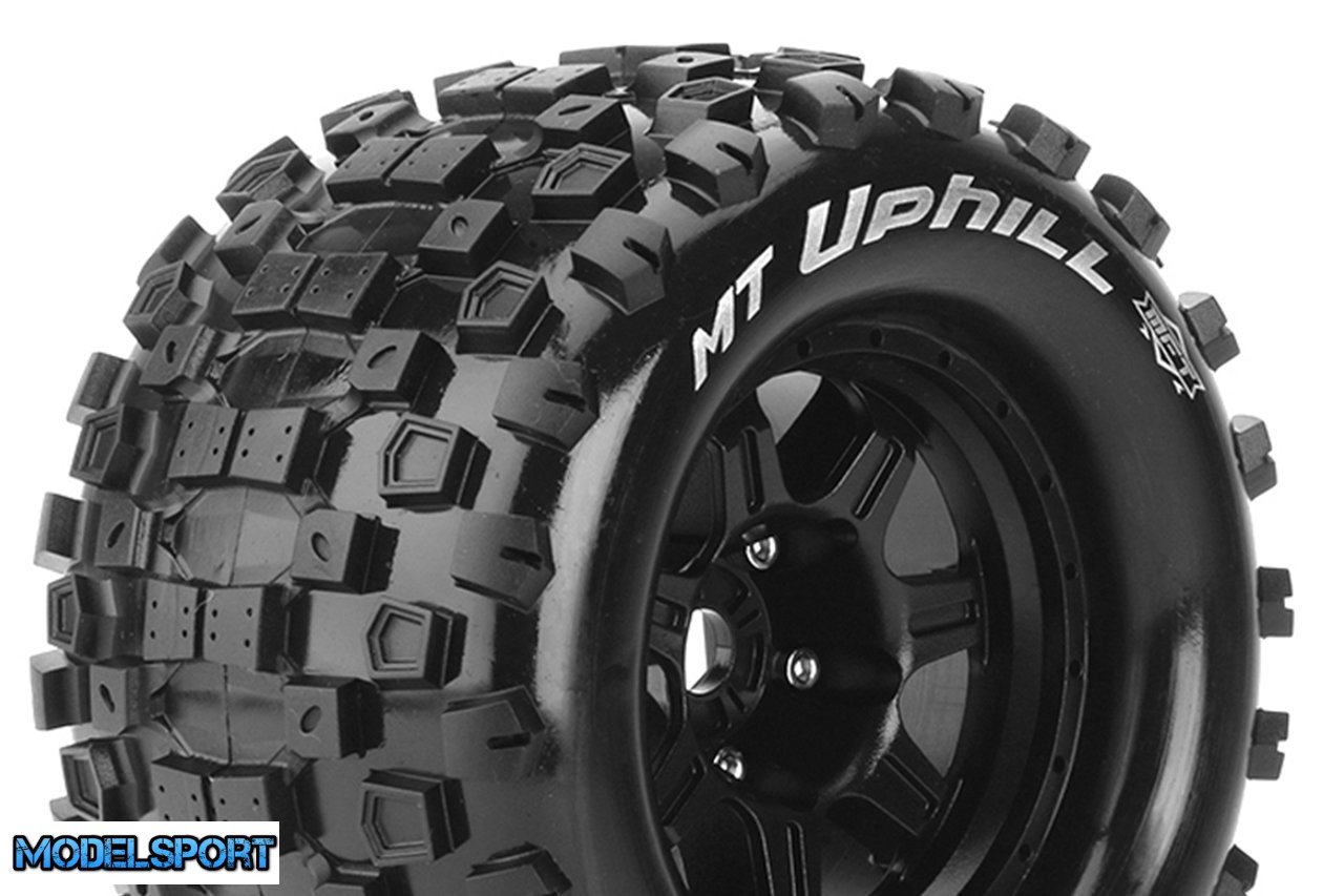 Louise RC - MFT - MT-UPHILL - 1-8 Monster Truck Tire Set - Mounted - Sport - Black 3.8 Bead Style Wheels - 1/2-Offset - Hex 17mm - L-T3322BH