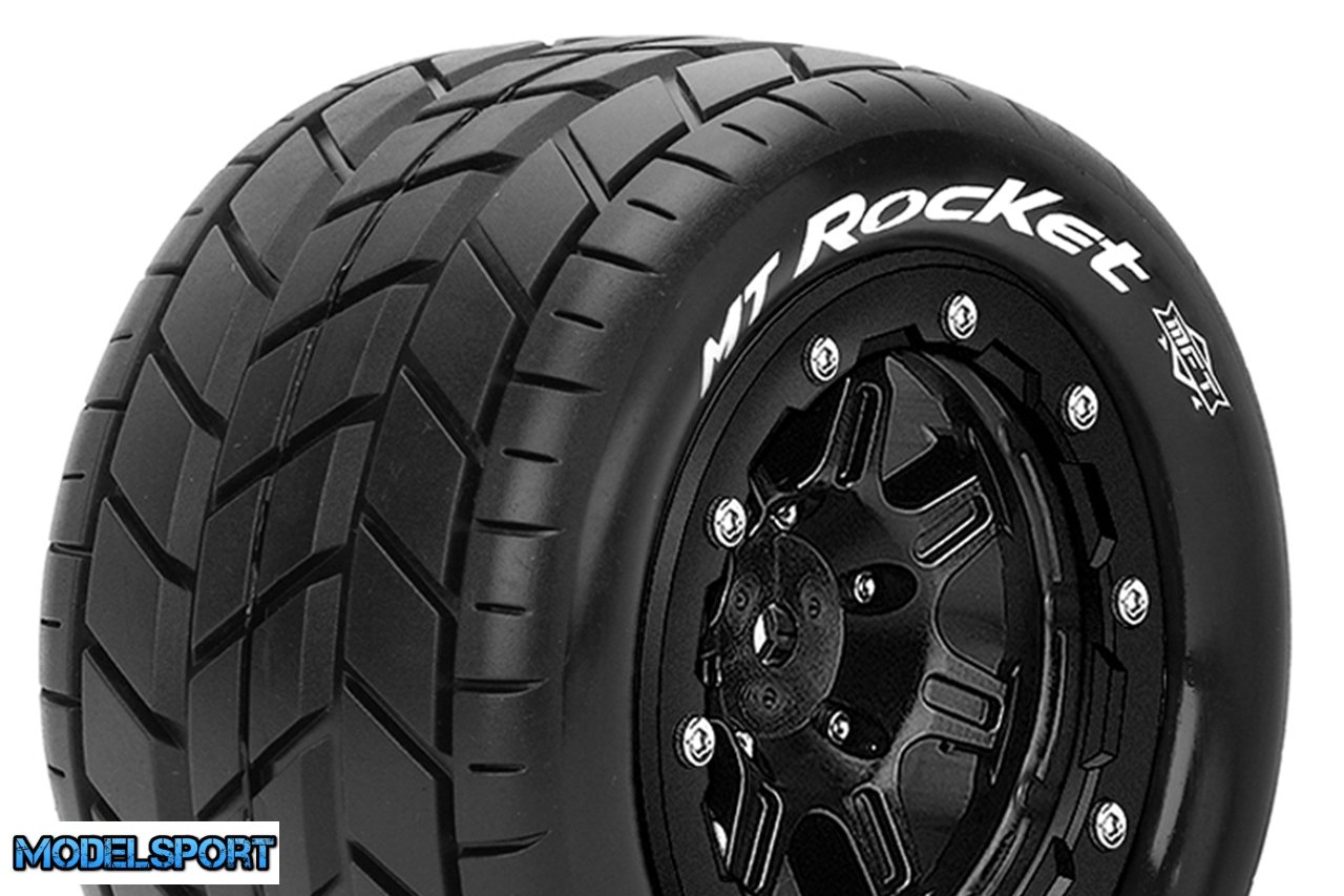 Louise RC - MFT - MT-ROCKET - Tire Set for Maxx - Mounted - Sport - Black 3.8 Bead-Lock Wheels - 1/2-Offset - Hex 17mm - L-T3328SB