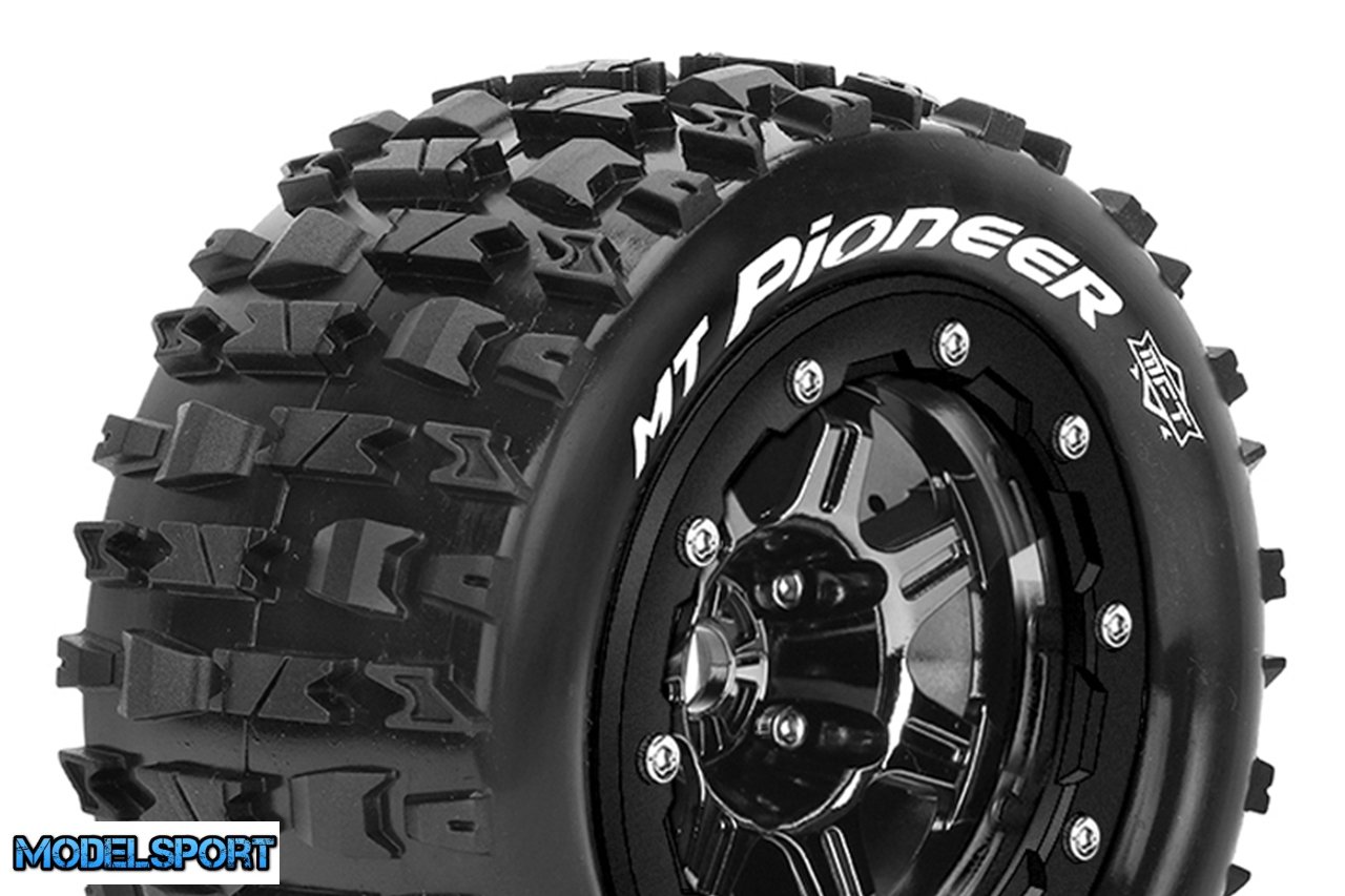 Louise RC - MFT - MT-PIONEER - Tire Set for Maxx - Mounted - Sport - Black Chrome 3.8 Bead-Lock Wheels - 1/2-Offset - Hex 17mm - L-T3329SBC