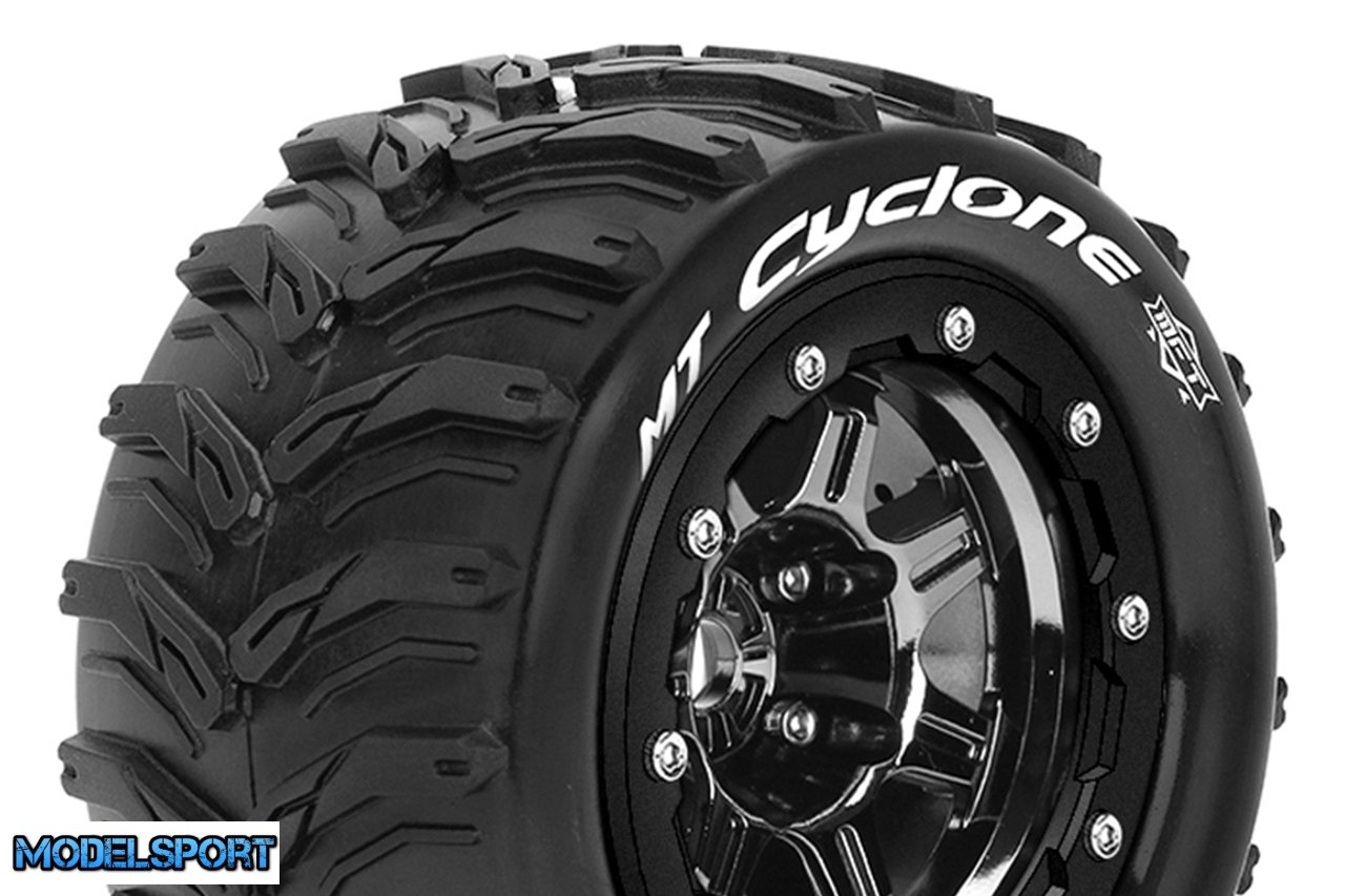 Louise RC - MFT - MT-CYCLONE - Tire Set for Maxx - Mounted - Sport - Black Chrome 3.8 Bead-Lock Wheels - 1/2-Offset - Hex 17mm - L-T3331SBC