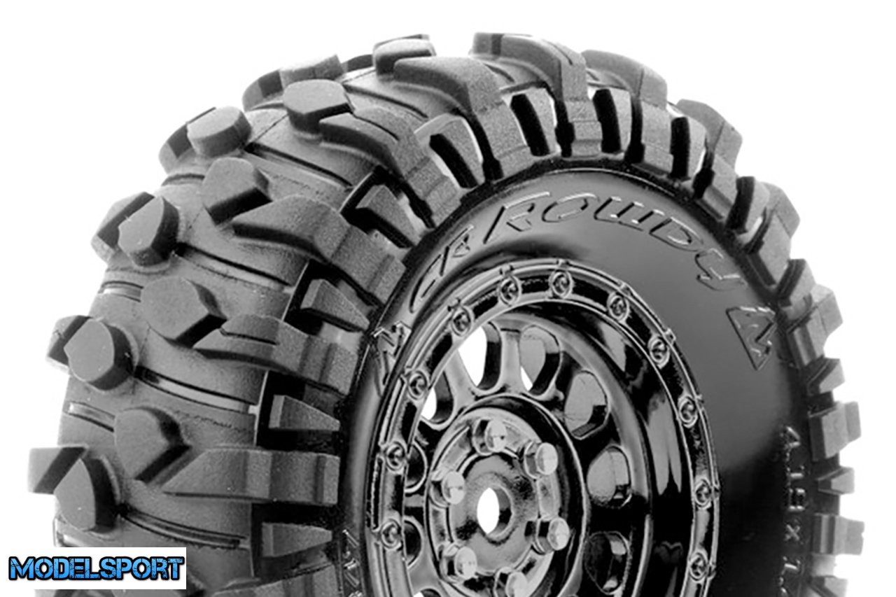 Louise RC - CR-ROWDY - Class 1 - 1-10 Crawler Tire Set - Mounted - Super Soft - Black Chrome 1.9 Wheels - Hex 12mm - L-T3347VBC