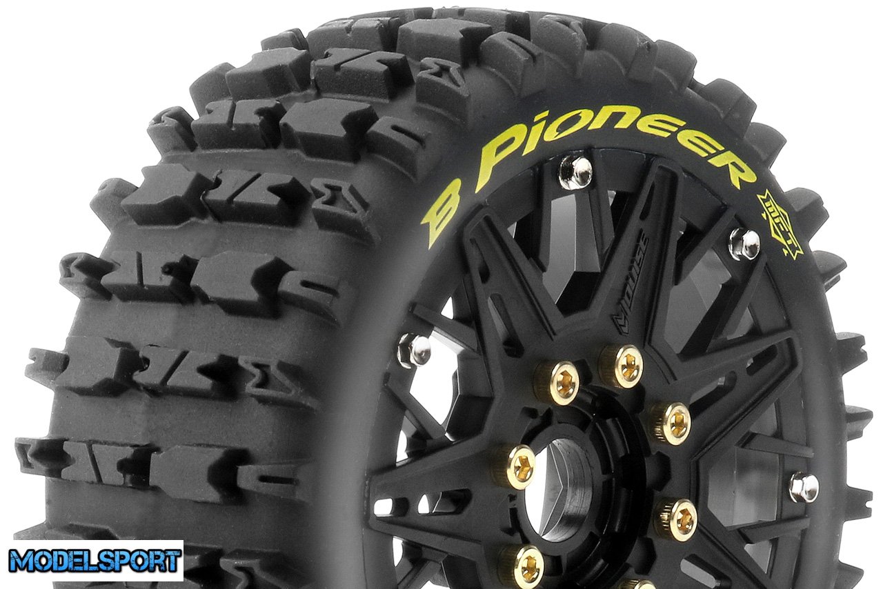 Louise RC - MFT - B-PIONEER - 1-8 Buggy Tire Set - Mounted - Soft - Black Spoke Wheels - Removable 0" & 1/2" OFFSET HEX 17mm - L-T3363SB