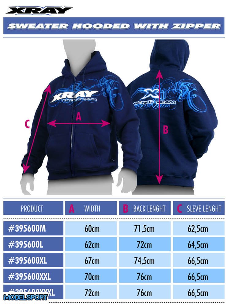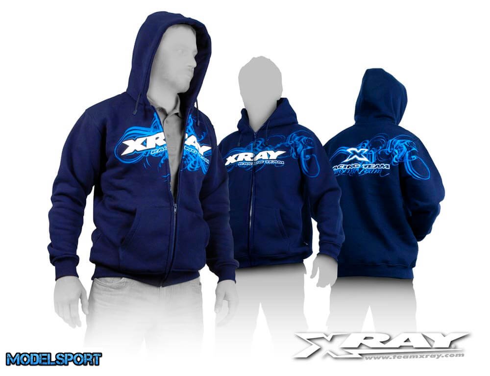 Den autentiske nye XRAY Hooded Team Sweater med lynlås er lavet af højkvalitets 100% bomuldsstof i en klassisk blå nuance. Den nye hættetrøje er meget behagelig at have på og har bløde elastiske manchetter i enderne af armene i fuld længde. Udsmykket med stilfulde XRAY RACING TEAM-logoer foran og bagpå.