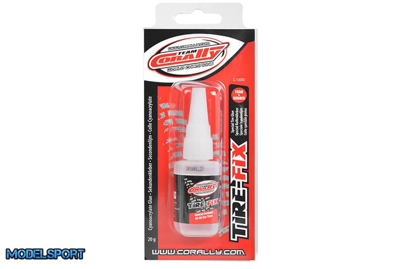 Team Corally Dæklim er en speciel formuleret medium viskositet CA til limning af gummi- og skumgummidæk.