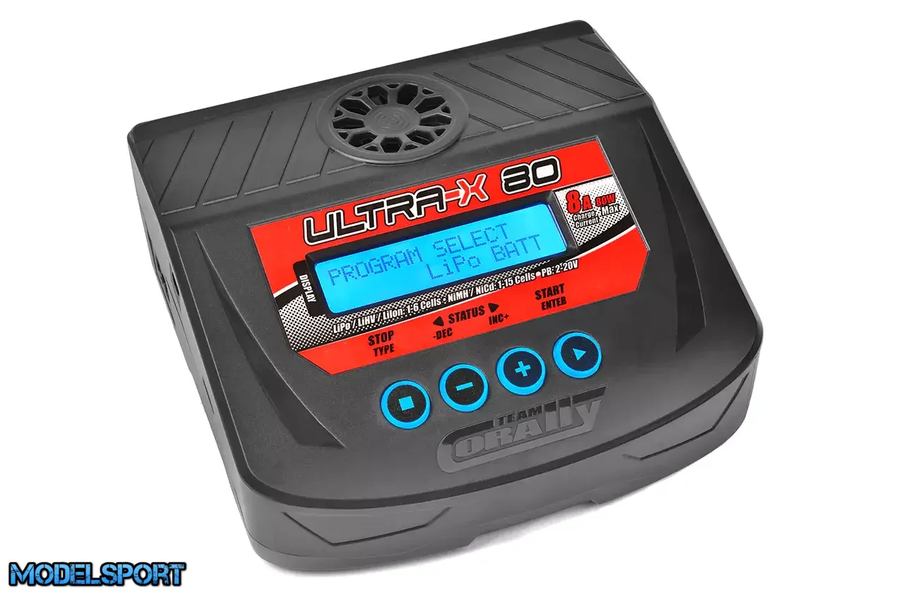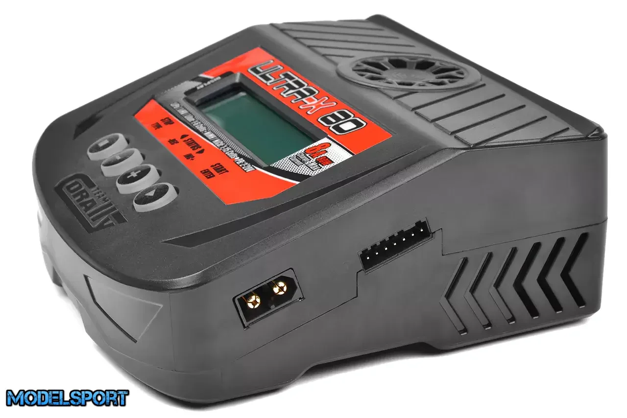 Professionel og effektiv opladningsteknologi i et kompakt hus. ULTRA-X 80 er en moderne, effektiv og kraftfuld oplader til lithium batterier fra 1 til 6S, NiCd - NiMH-batterier fra 1 til 15 celler og blysyre batterier fra 2 til 20V.