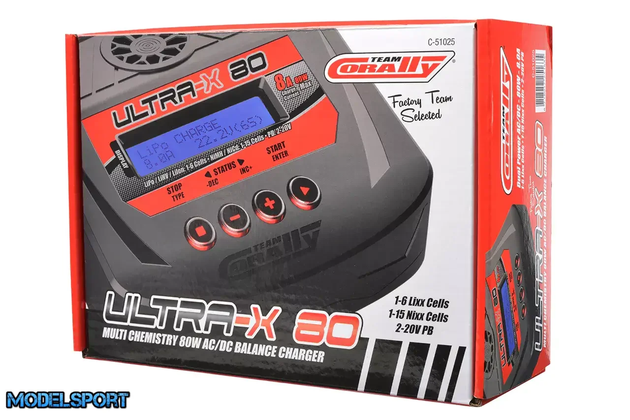 Team Corally Ultra-X 80 AC/DC Balance oplader 80W 1-6S Lixx 1-15 Nixx 2-20V PB