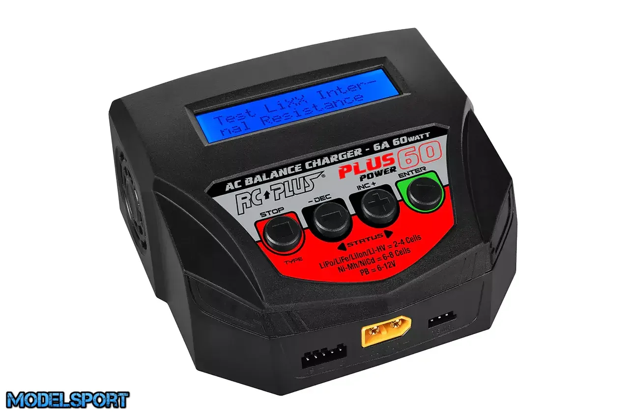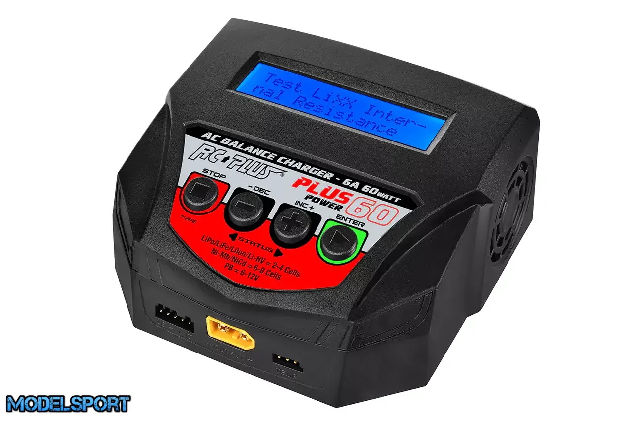 PLus Power 60 er en moderne, effektiv og kraftfuld oplader til lithiumbatterier fra 2 til 4S, NiCd - NiMH-batterier fra 6 til 8 celler og blysyrebatterier fra 6 og 12V.